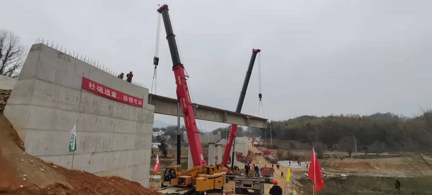 橋梁吊裝施工現(xiàn)場(chǎng)