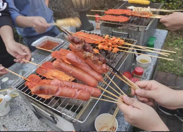 傍晚時(shí)刻,房車營(yíng)地前煙火味十足,烤肉的味道香飄十里,大家分工合作,一起動(dòng)手,體驗(yàn)了“自己動(dòng)手豐衣足食”的樂(lè)趣。面對(duì)豐富的食物,大家烤得熱火朝天,吃得不亦樂(lè)乎!歡聲笑語(yǔ)連成片,其樂(lè)融融。